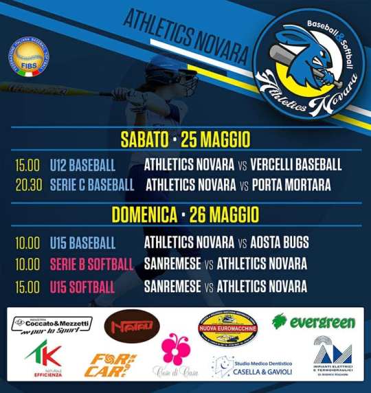 La kermesse sportiva inizia con gli U12 baseball impegnata contro la capolista Vercellese, prosegue al Provini alle 20.30 con il derby seniores con i cugini del Porta Mortara capolista imbattuta del girone A di serie C, sfida molto suggestiva e che sicuramente attirerà il grande pubblico sugli spalti.