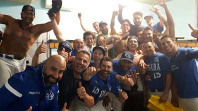 Il nostro attacco segna il quinto punto grazie ad un paio di errori da parte degli avversari, si presenta in battuta il nostro slugger Aggio a basi piene e due out, nei turni precedenti non aveva fatto vedere granché allineandosi alla prestazione di tutta la squadra, ma ecco che Omar stupisce ancora tutti incrociando un line drive al centro che, per nostra fortuna, non viene intercettato, la palla passa e le basi si svuotano pareggio raggiunto e Aggio arriva fino in terza, un tiro sbagliato del taglio manda la pallina nei pressi del dugout e così Aggio riesce a segnare il punto della vittoria in un incredibile Walk Off.