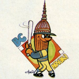 Dell’opera (gratuita) del Mangini disegnatore e bozzettista legato a Novara cito almeno due lavori: il logo del biscottino, ovviamente, che sta anche sull’esterno e a custodia dello stadio, e la copertina dello storico numero unico del 1972, bozzetto poi ripreso e modificato per il libro “Figli della Lippa”.