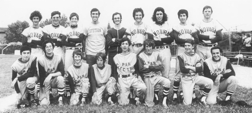 PER SETTE ANNI IL BASEBALL NOVARA , DELL’ALLORA PRESIDENTE GIULIO GENOCCHIO E SPONSORIZZATA PAN ELECTRIC ( DOVE ANCORA LAVORAVO ) , GIOCO’ LE SUE PARTITE INTERNE NEL CAMPO DI CALCIO DEL CENTRO SOCIALE CONCESSOCI GRATUITAMENTE DA DON ALDO MERCOLI .