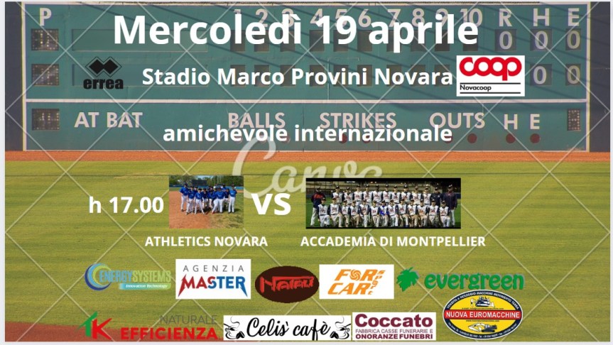 Lo stadio Provini di Novara arricchisce la sua storia Internazionale ospitando Mercoledi’ 19 Aprile un incontro, riservato agli Under 16, tra il Novara Athletics e la formazione Francese dell’Accademia di Montpellier ( vedi foto ). L’Accademia giochera’ infatti il 17 a Torino, il 18 ad Avigliana, il 19 a Novara, il 20 a Bologna ed il 21 a Firenze in una tournee pre-campionato. La formazione Francese, il cui nome completo e’ Pole Espoir Montepellier Occitanie, e’ un’ Accademia permanente organizzata dal Ministero dello Sport Giovanile e gestita dalla Federazione Francese di Baseball e Softball. In questa Accademia sono presenti diverse categorie di Baseball e di Softball ed e’ appunto la rappresentativa Under 16 di Baseball che fara’ questa tournee in Italia dal 17 al 22 di Aprile. La rappresentativa sara’ diretta da M. Jean-Michel Mayeur che e’ anche il Manager della Nazionale Francese U15 .L’Athletics Novara conferma con questo incontro la sua presenza nell’attivita’ internazionale ed ospitera’ anche in Luglio , con la collaborazione dell’altra Societa’ Novarese del Porta Mortara Baseball Softball , la Finale Europa-Africa della categoria Senior ( 13.16 anni ) della Little League International. A questo Torneo parteciperanno sei Nazioni e la vincente andra’ a disputare in Usa le World Series nel mese di Agosto.