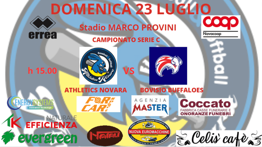 Domenica pomeriggio al Provini andrà in scena l’ultimo atto di questo campionato di serie C 2023,a farci visita i Buffaloes di Bovisio appaiati in classifica con lo stesso nostro record di 5 vittorie e 8 sconfitte ,squadra sicuramente molto esperta rispetto alla nostra che è un cantiere in piena costruzione ,questo ci fa ben sperare per un futuro prossimo molto più concreto e con dei risultati sicuramente migliori di quelli che attualmente siamo riusciti ad ottenere in campo .