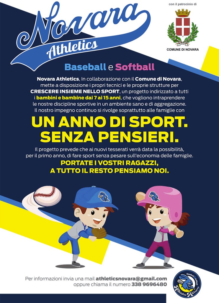 Con la fine delle vacanze ripartono gli open day al Provini dedicati alle ragazze e ragazzi dai 7 ai 15 anni ,con il patrocinio del Comune di Novara la nostra società ha messo in atto un importante iniziativa rivolta a tutte le famiglie Novaresi ,daremo infatti la possibilità a tutti i nuovi iscritti di svolgere l’attività del baseball e del softball con i nostri tecnici senza dover sostenere dei costi di quote societarie .iniziativa questa che ci vede impegnati a dare la possibilità a tutti di praticare uno sport sano di coesione e di crescita sia a livello sportivo ma soprattutto a livello umano,il tutto in un ambiente sereno e costruttivo ,in questi giorni purtroppo dalla cronaca arrivano sempre più spesso notizie di comportamenti gravi da parte di giovani frutto di una società sempre più virtuale e meno di coesione con gli altri ragazzi e ragazze e soprattutto il nostro sport insegna il rispetto nei confronti dell’avversario ma soprattutto nei confronti degli arbitri e tecnici e cosa veramente necessaria in questi tempi il rispetto delle regole ,ce un detto negli Stati Uniti molto emblematico “date a un ragazzo una mazza e una pallina e diventerà sicuramente un buon cittadino “.