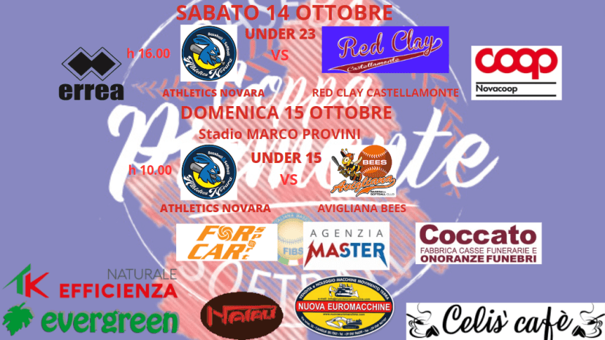 Arrivati all’atto decisivo per la nostra Under 23 che Sabato pomeriggio contro i Red Clay di Castellamonte si giocherà la possibilità di entrare nella final fuor della Super Coppa Piemonte ,i nostri ragazzi dovranno mettere tutto quello che hanno in campo per cercare di superare gli avversari arrivando così a giocarsi sul proprio terreno la giornata finale ,giornata finale che si terra al Provini Sabato 21 ottobre .