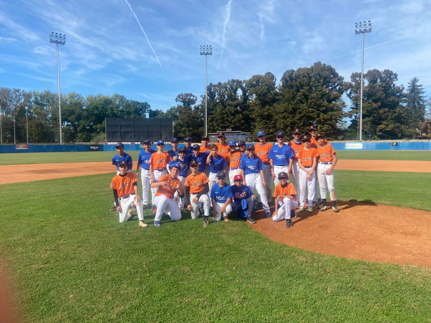 Domenica mattina impegnativa anche per la nostra Under 15 impegnata nella finalina del 8°-7° posto della competizione Piemontese ad affrontare i nostri ragazzi cerano i pari età dell’Avigliana Bees ,partita altalenante dove i ragazzi in campo hanno dato il massimo sia da una parte che dall’altra che dopo ben 3 ore di gioco e 7 innings completi la partita era ferma sul 13 a 13 ,sicuramente chi era sugli spalti si è divertito dei continui capovolgimenti dei ragazzi che si sono risposti punto su punto ,questo ha fatto si che al termine della partita regolare i due allenatori Spataro-Murgia decidevano di concludere la partita con questo risultato andando contro la regola che non permette il pareggio nel nostro sport ,decisione presa per premiare le due compagini che si sono affrontate senza risparmiarsi e meritevoli tutte e due le squadre del 7° piazzamento .