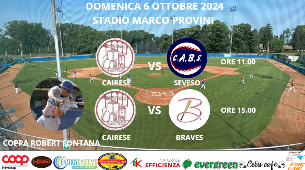 La nostra Under 23 rispetterà il turno di riposo come da calendario e ritornerà in campo Sabato 12 Ottobre al Saini contro il forte Milano 46.Il Provini ospiterà Domenica 6 Ottobre due partite della Coppa Robert Fontana Cairese-Seveso e Cairese -Braves ,come già comunicato la squadra Ligure svolgerà le sue partite nel nostro stadio per permettere a tutte le squadre impegnate di fare pochi chilometri in trasferta ,la nostra società ha accettato molto volentieri di ospitare queste partite molto interessanti ,per gli appassionati del nostro sport potrà essere una buona occasione di passare una domenica guardando del buon baseball.