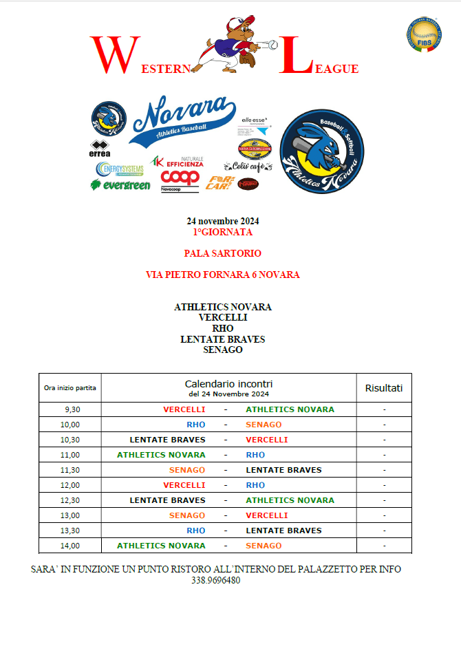 Domenica 24 Novembre a Novara e Boves riparte la 17 ° edizione della Western League ,i nostri “leprotti ” saranno impegnati nella prima giornata del Campionato al palazzetto Celestino Sartorio di viale Verdi a Novara ,a partire dalle 9.30 i nostri ragazzi affronteranno il Vercelli ,Senago ,Rho e Lentate Braves .