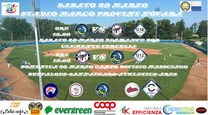 Al Provini l’open season per i ragazzi Under 18 guidati dal Manager Filippo Spataro coadiuvato dal pitching coach Mario Benetti, la squadra è composta da tanti esordienti e dai tre veterani Spataro-Rago-Segaloni, a loro è affidata la leadership della squadra e la guida dei tanti esordienti. Il primo team affrontato sarà il Vercelli, squadra competitiva costruita per vincere il campionato, appuntamento Sabato 29 Marzo alle ore 15.00.