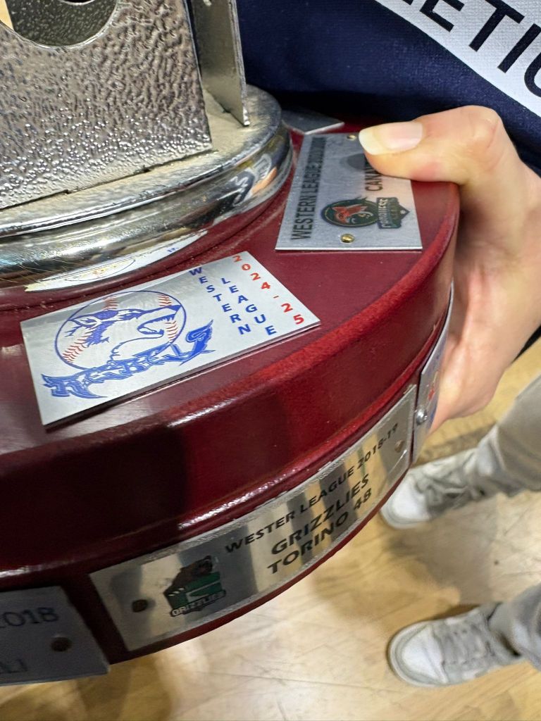 Paolo Murgia che con i suoi Rebels è il Campione uscente riconsegna il Trofeo Western League al nostro Presidente Toscano Barbara ,il Trofeo verrà riassegnato alla squadra che si aggiudicherà questa edizione della manifestazione e da quello che si è visto fino ad oggi ci sarà una bella battaglia (sportiva) per aggiudicarsi il titolo di Campione Western League 2025/26.