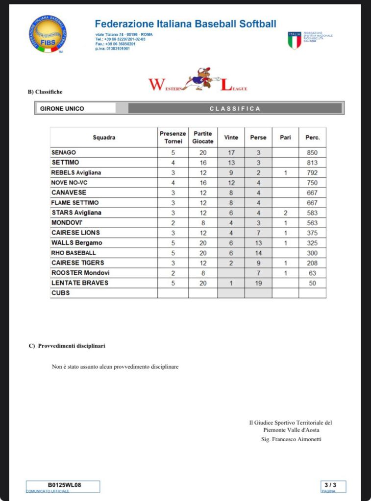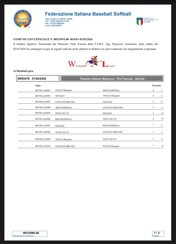 Continua a pieno ritmo verso la finale del 15 marzo il campionato Western League 2025/26,con la doppia giornata di ieri tenuta a Bergamo e Cairo Montenotte, l’ottava giornata ha regalato delle conferme per quanto riguarda la classifica ma anche delle belle sorprese con il Senago che perde una partita contro i bravi ragazzi del Rho ,anche la nostra squadra NoVe (Athletics/Vercelli) ha confermato di essere in ottima forma cedendo solo alla capolista Senago ma imponendosi contro il Rho il Lentate Braves e i padroni di casa del Bergamo Walls .