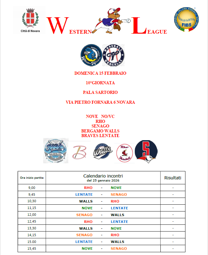 Quello di Domenica 15 Febbraio sarà per la nostra squadra Under 12 l’ultimo appuntamento di Regular Season per questa edizione della Western League ,i nostri ragazzi insieme a quelli del Vercelli formano una squadra molto competitiva che si è comportata molto bene sia sul piano tecnico che di squadra ,i ragazzi infatti si sono ben amalgamati tra di loro e grazie al lavoro dei tecnici Aguero, Mirabal e Avignone riescono ad esprimersi sempre al meglio delle loro possibilità regalando delle ottime prestazioni in tutte le partite giocate fino ad oggi ,con il Patrocinio del Comune di Novara Domenica 15 febbraio presso al Pala Sartorio di Novara i nostri ragazzi ospiteranno Senago,Rho, Lentate Braves e Bergamo Walls .
