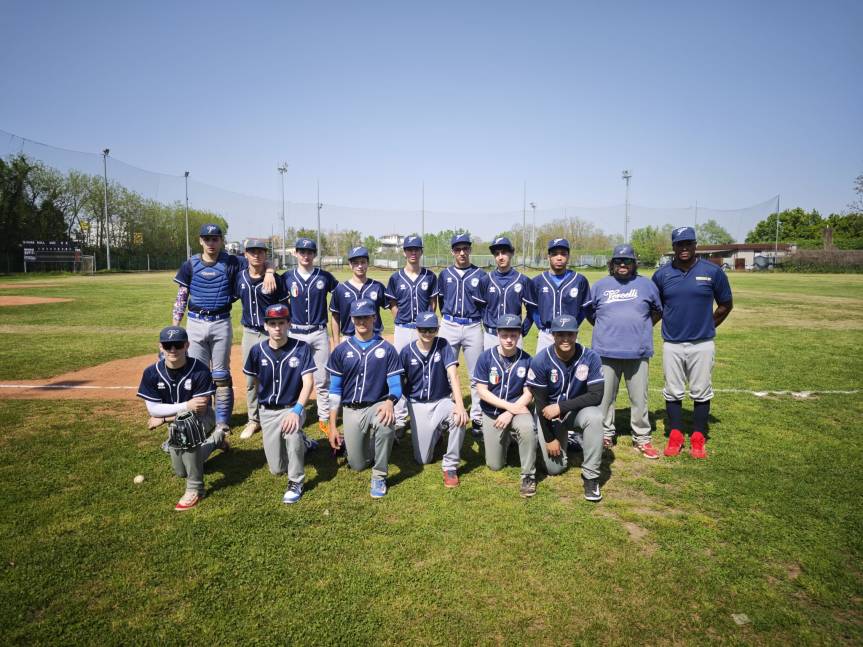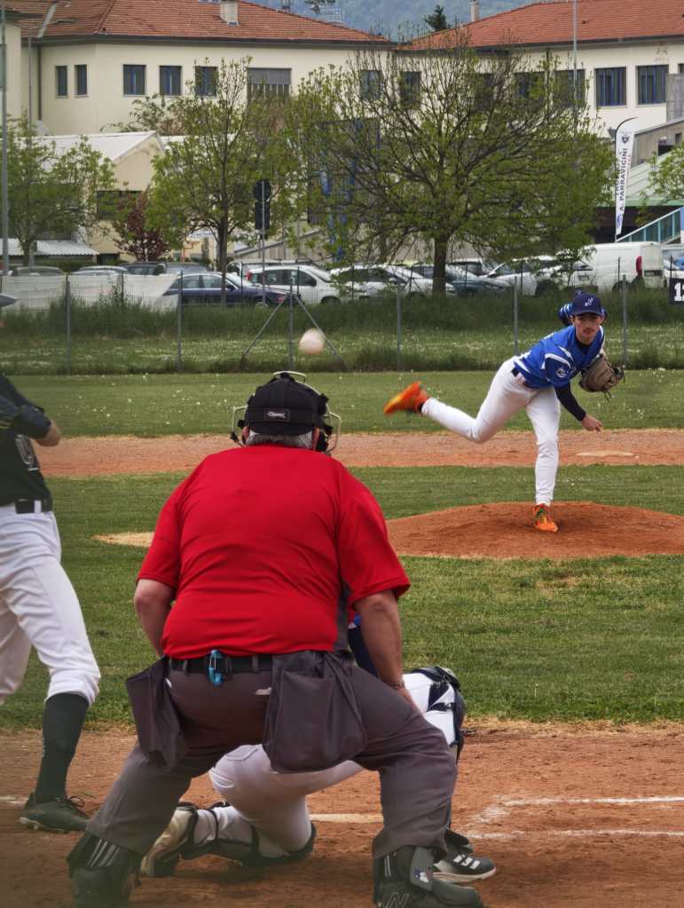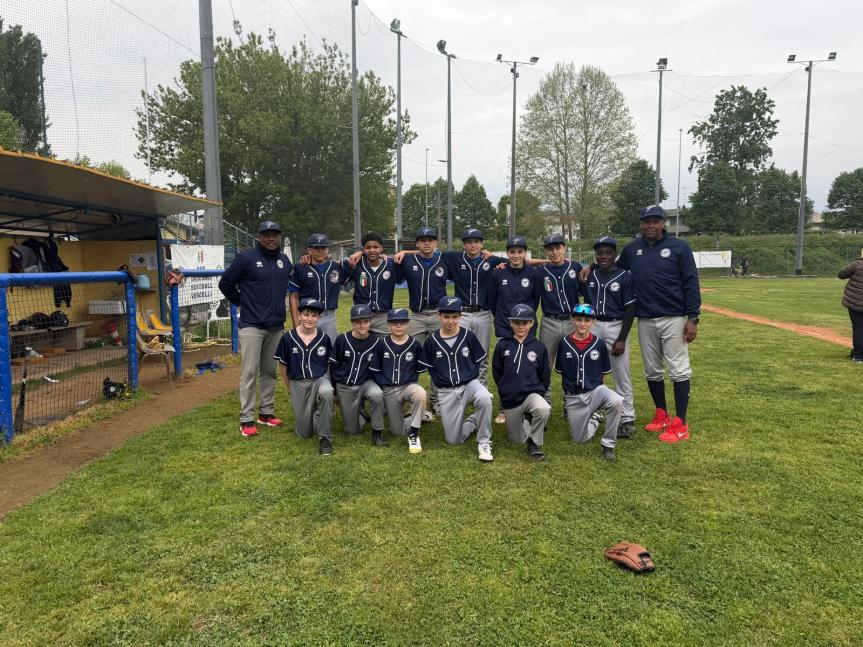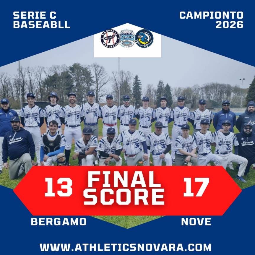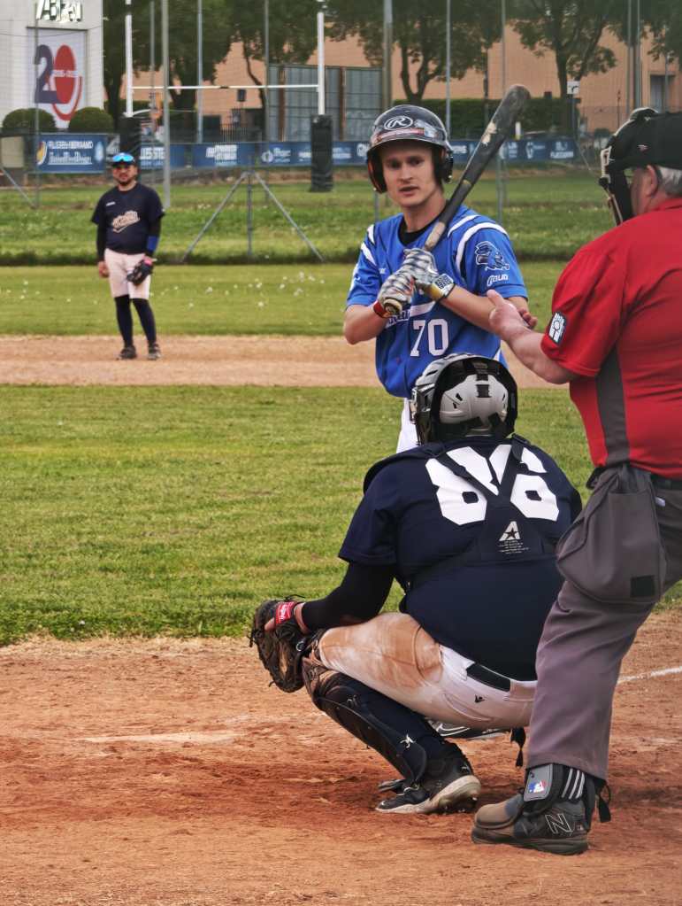 Serie C partita lunghissima durata ben 4 ore e mezza dove in campo abbiamo fatto tutto noi sia per noi che per la squadra avversaria che in tutta la partita ha messo a segno una sola valida ,guardando il risultato però si potrebbe pensare che i ragazzi di Bergamo abbiano venduta cara la pelle ma in realtà non è cosi ,in un inning da dimenticare i nostri lanciatori hanno concesso ben 11 punti a suon di basi per ball ne il partente Toncelli e il rilievo Brovero riuscivano a centrare la zona di strike permettendo cosi di segnare ai nostri avversari senza girare la mazza ,il terzo rilievo Sisti riusciva a bloccare questa emorragia di punti regalati tirando per 4 inning in modo perfetto ,tutto questo ci portava dal 4 a 0 iniziale a 11 a 4 per gli avversari, la squadra comunque non si è scomposta e negli inning successivi punto dopo punto riuscivano a recuperare lo svantaggio fermando il risultato finale sul 17 a 13 ,troppa la sofferenza sul monte di lancio ma dall’altra parte si è dimostrato un attacco molto produttivo da segnalare un lungo fuori campo da 2 punti di Lorenzo Maggiolo che ha chiuso sul monte anche la partita ,segnaliamo un lieve infortunio al nostro catcher Tejada sostituito molto bene da Baraggini .