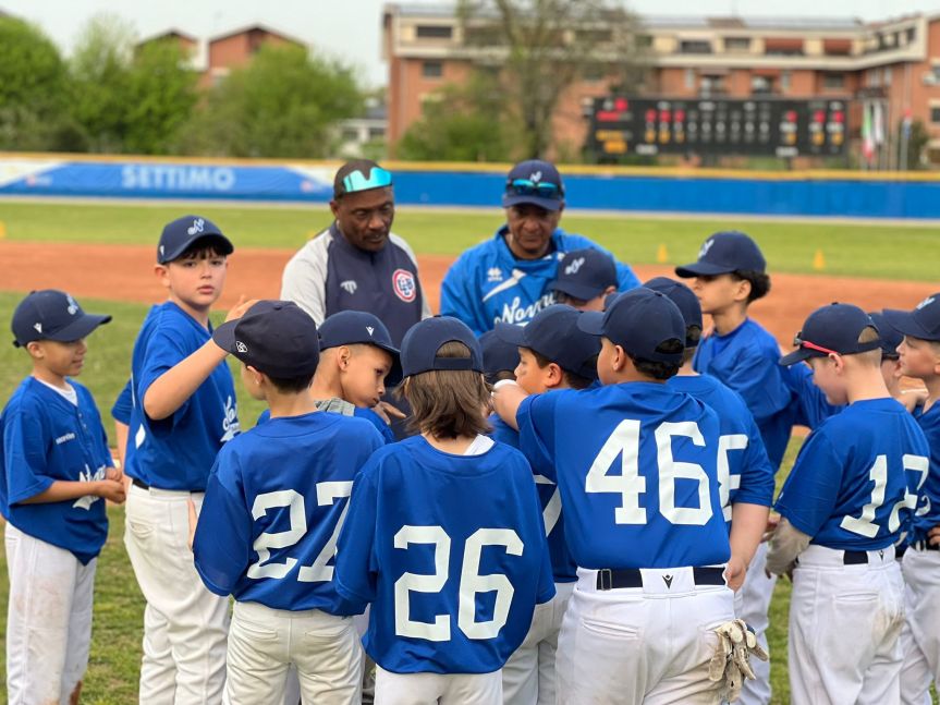 Serie C partita lunghissima durata ben 4 ore e mezza dove in campo abbiamo fatto tutto noi sia per noi che per la squadra avversaria che in tutta la partita ha messo a segno una sola valida ,guardando il risultato però si potrebbe pensare che i ragazzi di Bergamo abbiano venduta cara la pelle ma in realtà non è cosi ,in un inning da dimenticare i nostri lanciatori hanno concesso ben 11 punti a suon di basi per ball ne il partente Toncelli e il rilievo Brovero riuscivano a centrare la zona di strike permettendo cosi di segnare ai nostri avversari senza girare la mazza ,il terzo rilievo Sisti riusciva a bloccare questa emorragia di punti regalati tirando per 4 inning in modo perfetto ,tutto questo ci portava dal 4 a 0 iniziale a 11 a 4 per gli avversari, la squadra comunque non si è scomposta e negli inning successivi punto dopo punto riuscivano a recuperare lo svantaggio fermando il risultato finale sul 17 a 13 ,troppa la sofferenza sul monte di lancio ma dall’altra parte si è dimostrato un attacco molto produttivo da segnalare un lungo fuori campo da 2 punti di Lorenzo Maggiolo che ha chiuso sul monte anche la partita ,segnaliamo un lieve infortunio al nostro catcher Tejada sostituito molto bene da Baraggini .